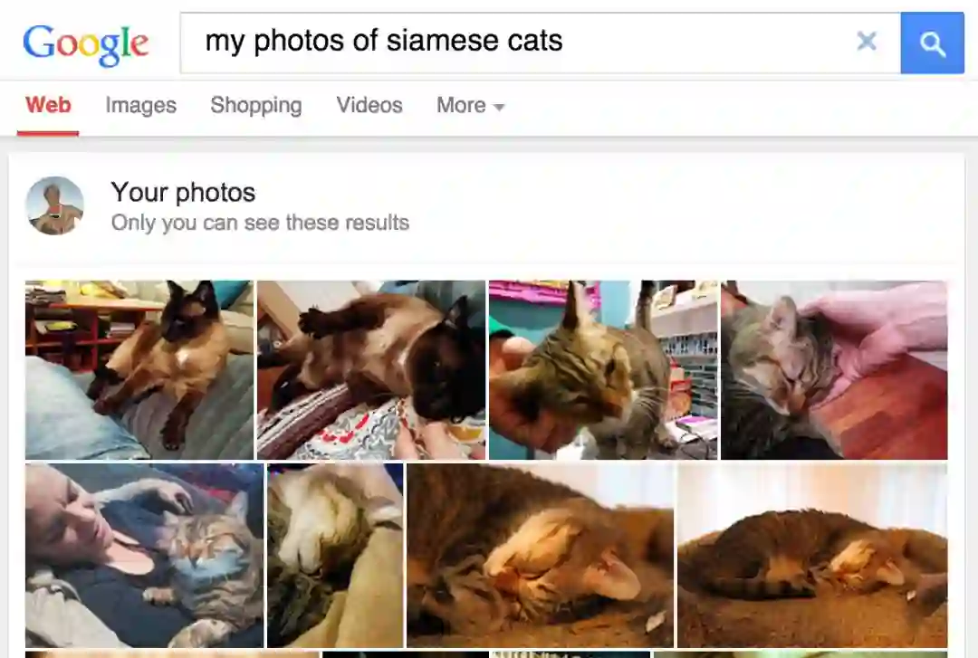 在2013年5月,谷歌发布了对个人照片进行搜索的功能,用户能够根据照片中的对象在自己的相册中检索相应的照片。