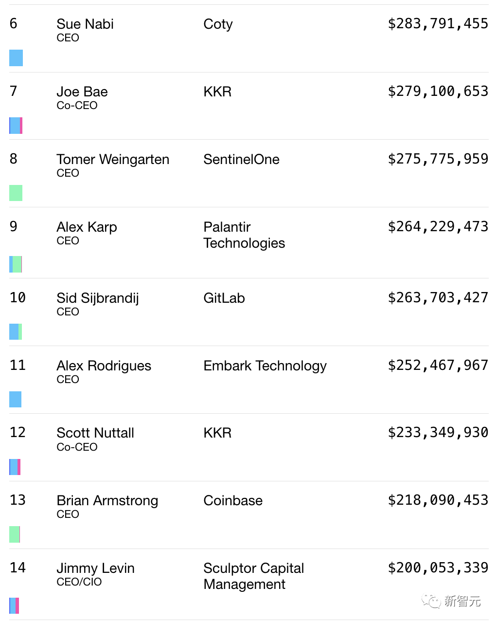 值得一提的是,排名第六的是Sue Nabi,薪酬最高的女性CEO,收入超3.43亿美元。