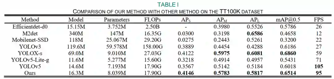 与现有的YOLOv5网络不同,对当前版本进行了改进,以减少尺度不变性的影响。同时,它可以部署在车辆的移动终端上,对交通标志进行实时检测和识别。