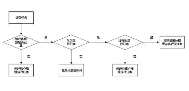若队列已满,判断线程池是否已满,线程池是否已满和maximumPoolSize参数有关,若未满创建线程执行任务