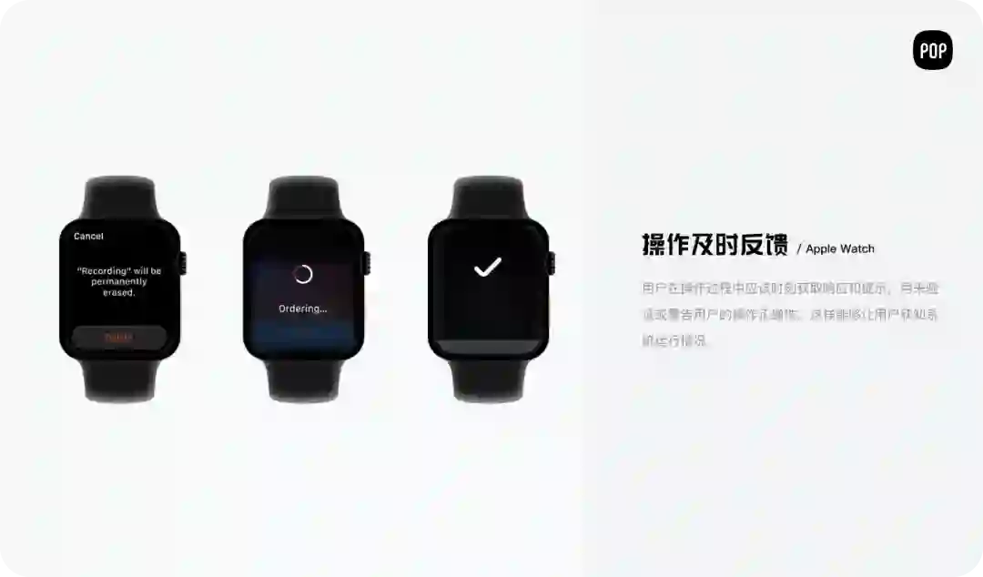 如智能手表在加载内容的时候,需要有加载图标提示,最好有加载进度,给用户足够的心理预期。并且由于界面的局限性,用户在使用过程中不可避免地会操作失误,所以在输入输出时要及时给用户提示,甚至在用户误操作的时候能够及时止损。