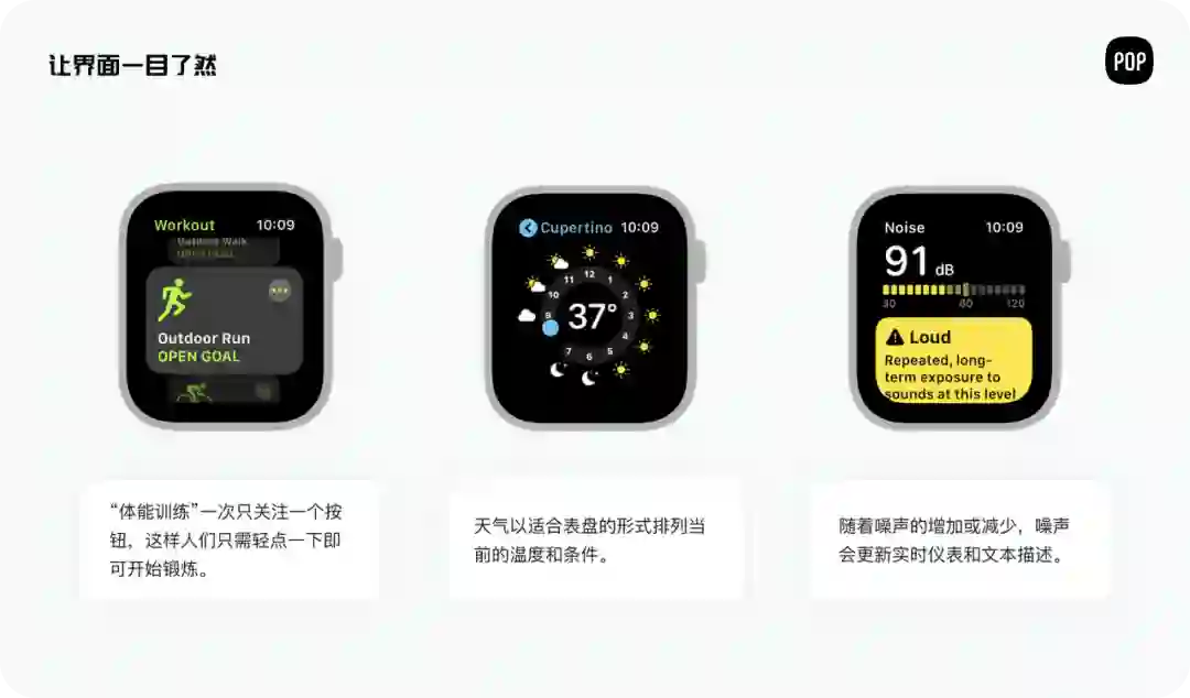 手表的使用场景大多都是运动、工作、学习,所以动态场景下,手表的界面就变得简洁易读。