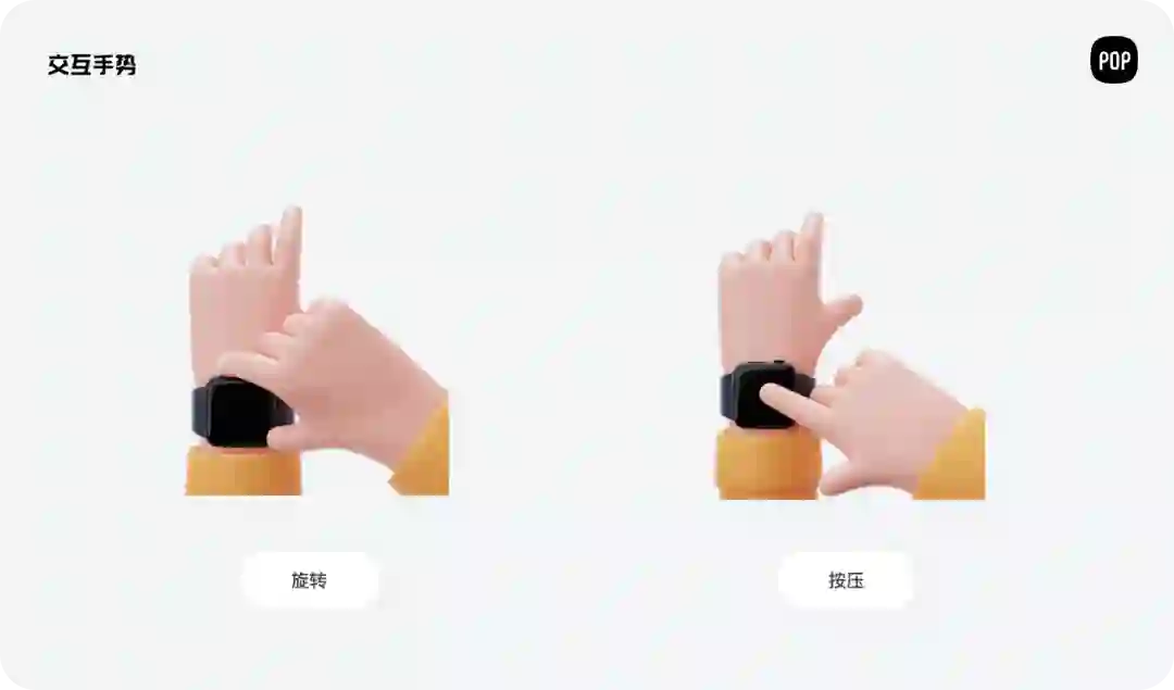 用于手表界面的交互方式主要分为三类: