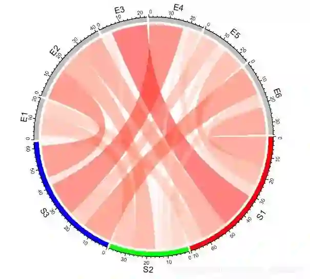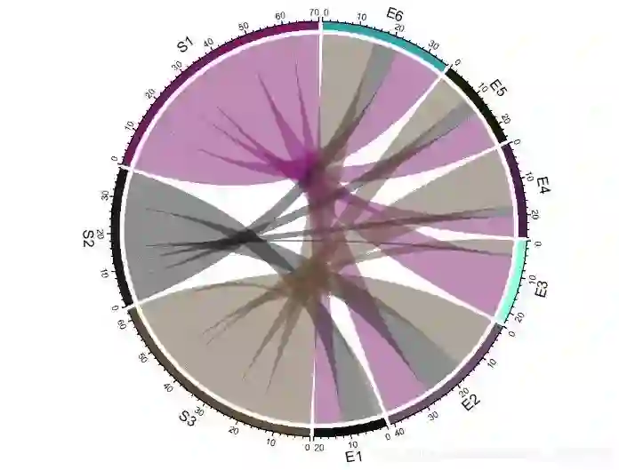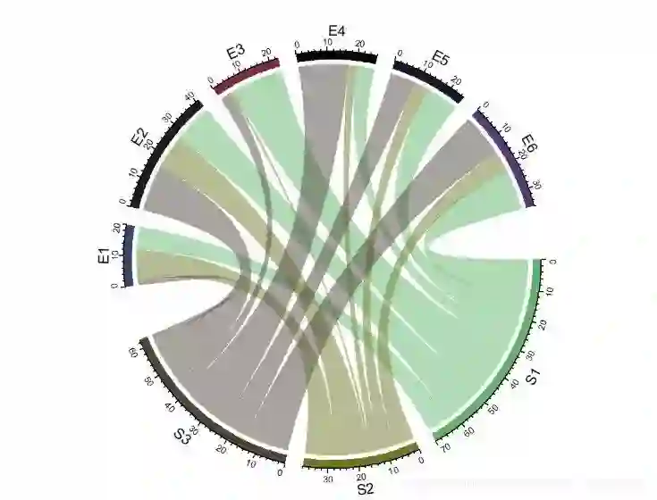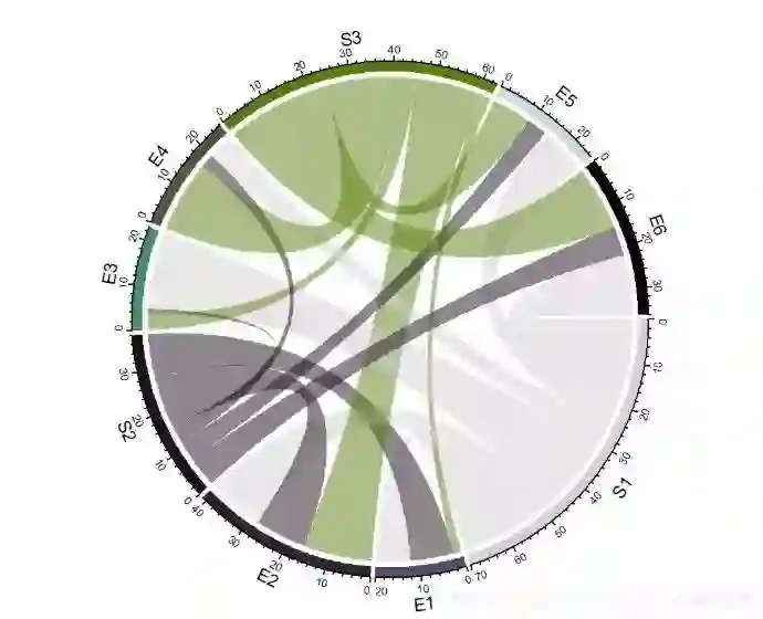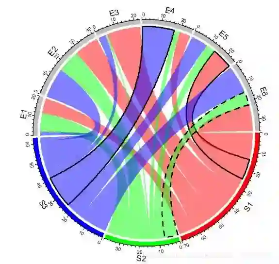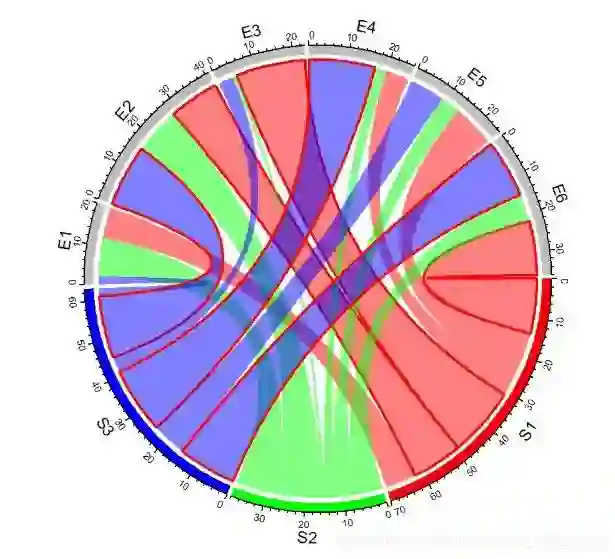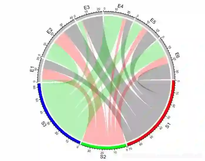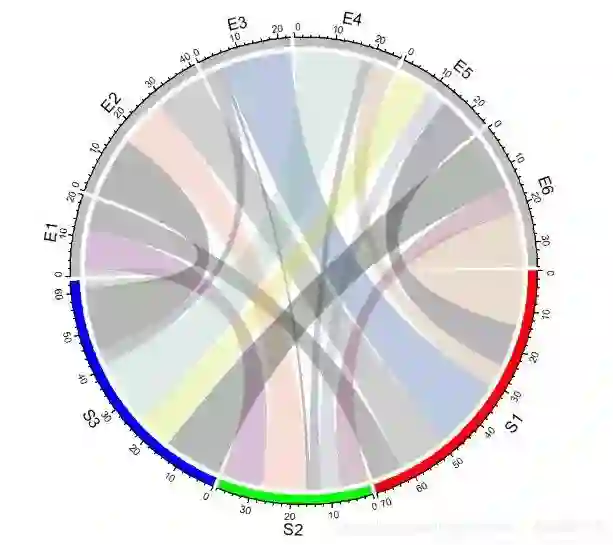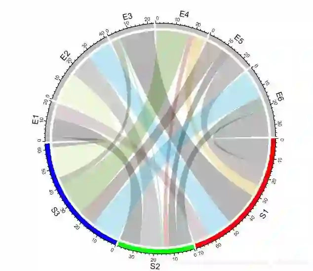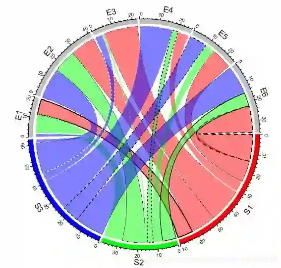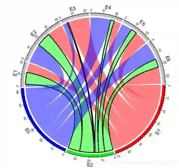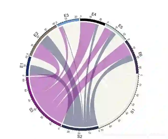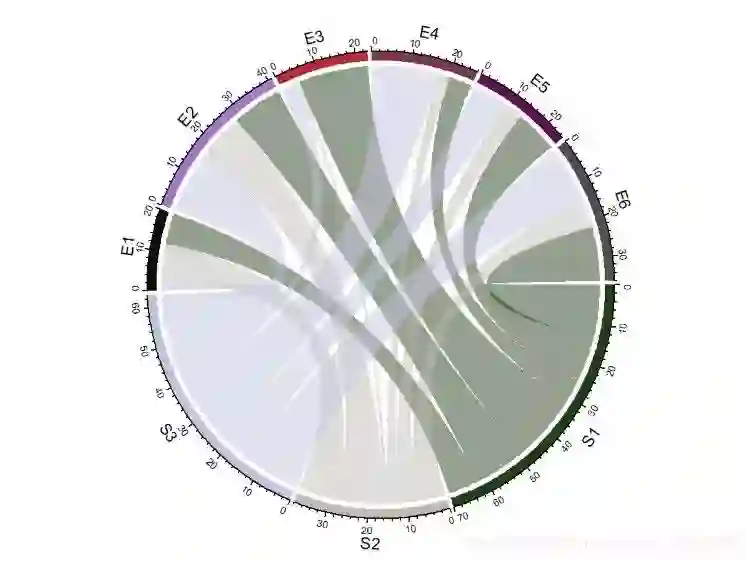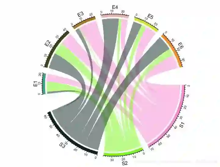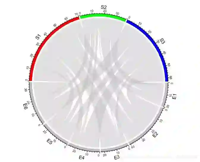 chordDiagram(mat, order = c("S1", "E1", "E2", "S2", "E3", "E4", "S3", "E5", "E6")) # 使用order参数调整顺序,默认3点钟顺时针方向