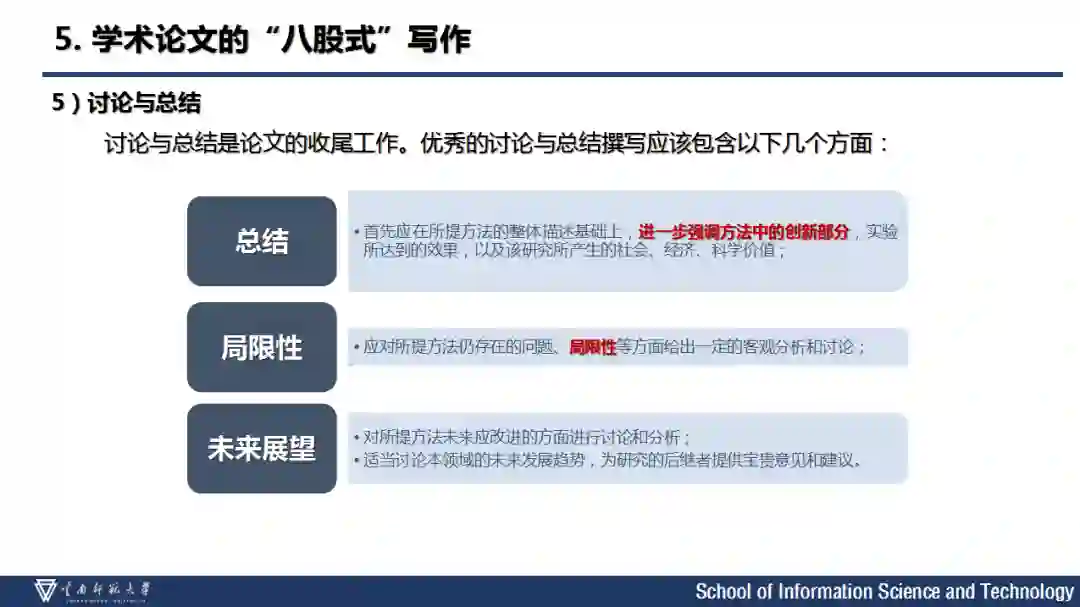通过不断的钻研,我们会产出一系列成果,这时候,需要记录阶段性的成果。学术论文是科研阶段性成果展示的载体。为了提升学术论文的可读性,使读者可以更好更快地理解其创新与贡献,学术论文的文章结构和撰写要求也形成了一些固定模式——学术论文的“八股式”写作。