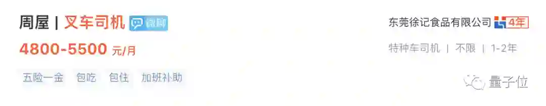 如果找23位工人来做,我们在招聘网站查一查,会发现徐福记的叉车司机月薪要5000多元,每月还有450元餐补,再加上员工住宿成本和五险一金,由于徐福记的母公司雀巢是上市公司,我们按照全额五险一金来计算的话,一位司机的成本至少要6500元/月,23个人一年就是180万。