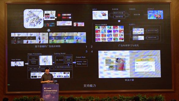 紧接着孙凌云教授详细介绍了浙江大学IDEA LAB参与的实际案例。一个是人工智能平面设计广告软件:AIpainting ,另一个是人工智能短视频生成软件 Alibaba Wood,并展示了森马使用Alibaba Wood投放数据。