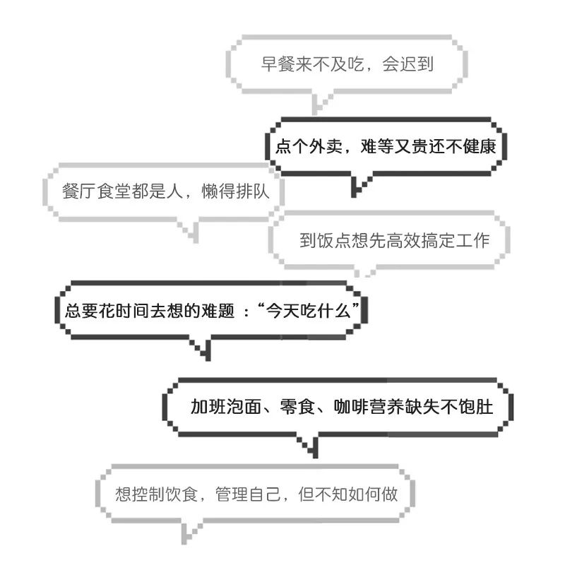青春有饭的初心并不是要改变传统的饮食方式,只是在生活/工作节奏越来越快的大环境下,为那些缺乏时间又追求营养的人们提供一种出色的解决方案。比如: