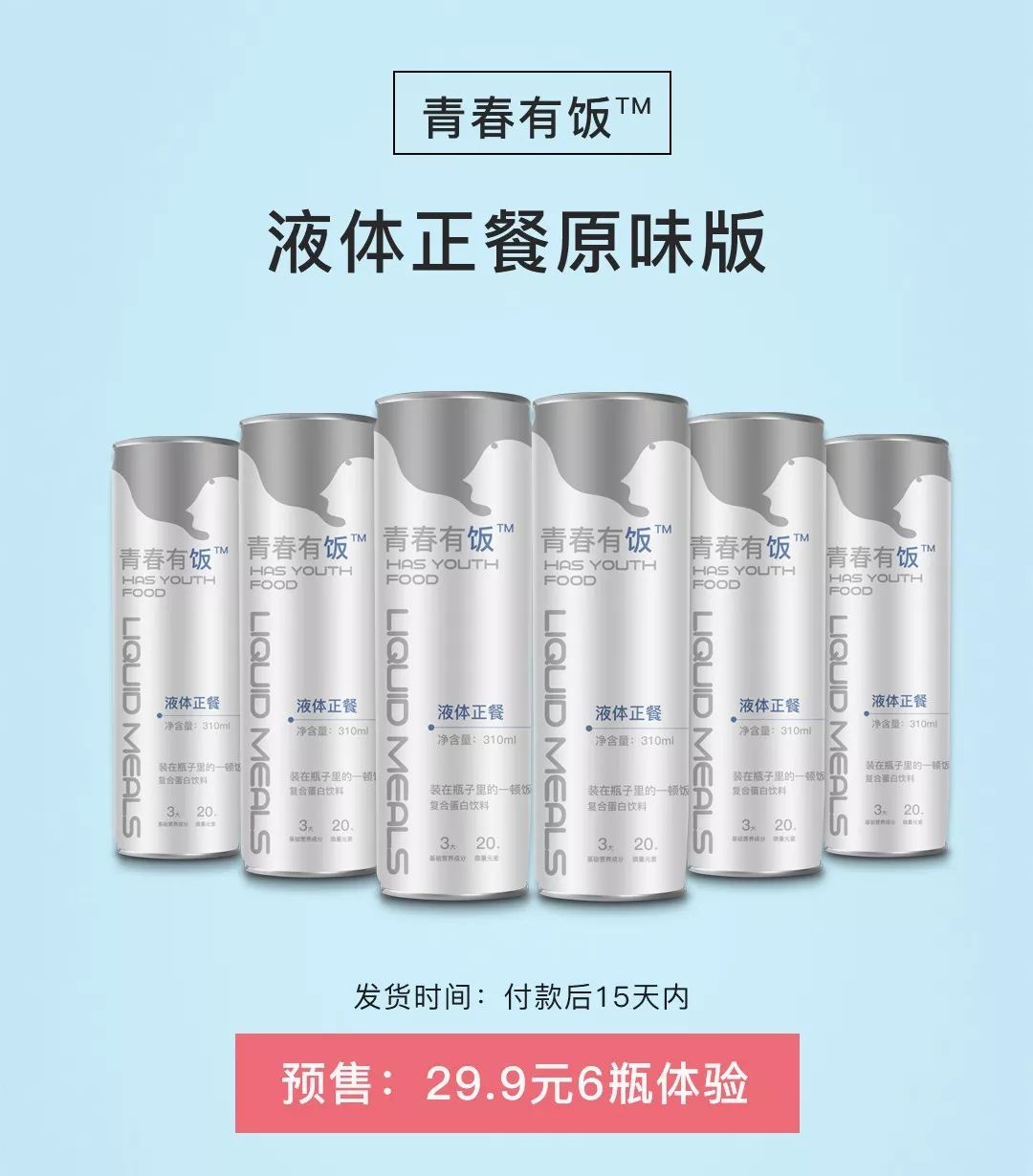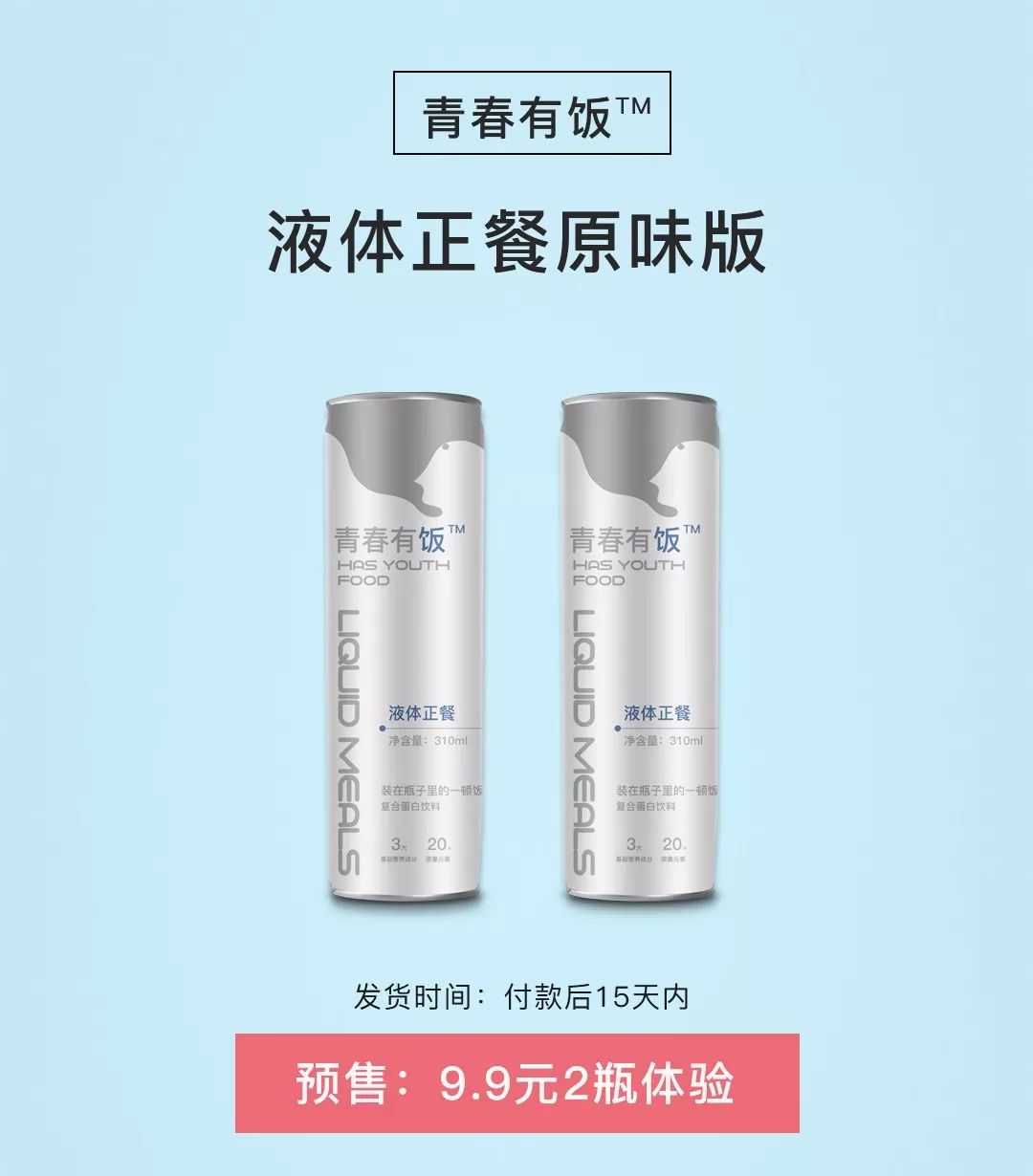 在中国,隆平科技园诞生的青春有饭,也经历了从粉末版到即饮版的完美升级!开罐即饮,随时随地都可以获得持续 4 小时左右的饱腹和一餐所需的所有营养。同时解决了“今天吃什么?”和“吃得实惠与健康?”两件麻烦事。