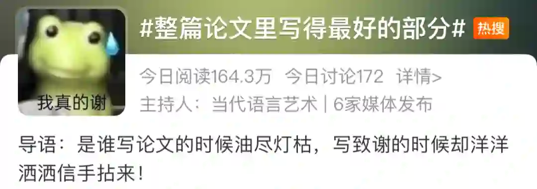 最近正值毕业季~ 对于写论文的各位来说,又到了论文致谢“鬼才”各显神通、大秀花式的时候。