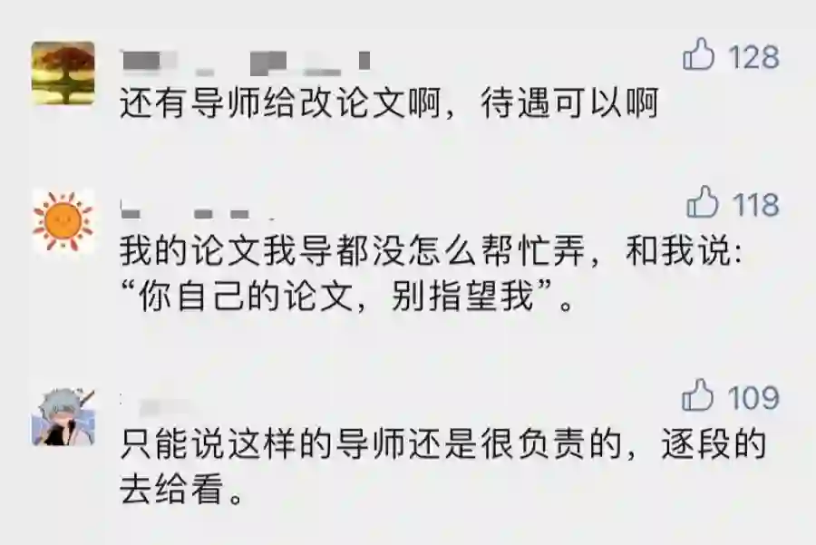我们前段时间发的文章《导师半夜给学生发信息:你睡了吗?我改你的论文气得睡不着》的评论区,很多准毕业研究生对于这种经历十分羡慕,有人表示,(硕士)从开题到送审,导师一次都没看过,只有干活才能想到我。