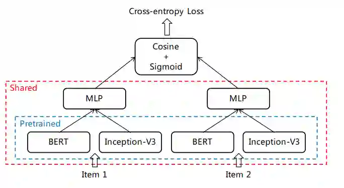 这其中比较关键的一步便是得到商品的嵌入向量,这里其综合了基于内容和基于协同的模型,提出了一种融合的CB2CF模型,将文本、图片和商品间的共现关系一并编码到向量中。
