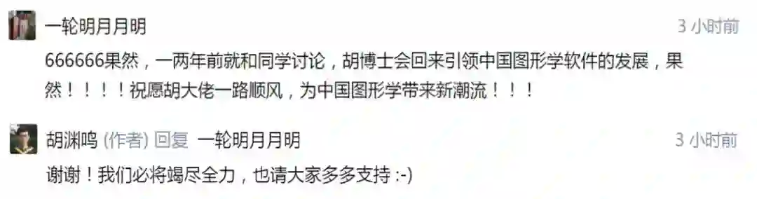 胡博士本人也现身知乎,呼吁志同道合之士加入其团队。对于胡渊鸣的创业,网友也给予了非常高的期许,希望「引领中国图形学软件的发展,为中国图形学带来新潮流。」