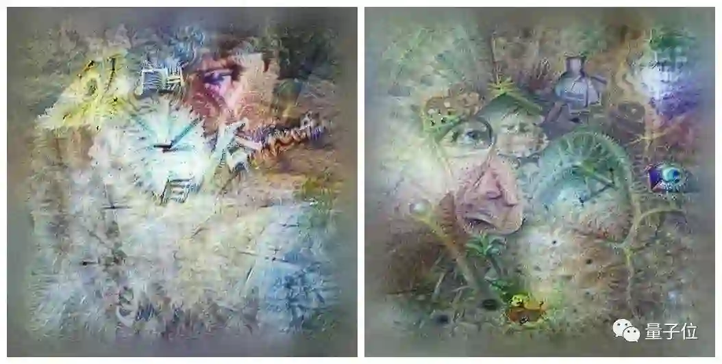 随着多模态预训练大模型的发展,人们开始好奇大模型到底学习到了什么?2022年6月,Nature子刊发表了一篇中国人民大学高瓴人工智能学院卢志武教授、孙浩长聘副教授以及文继荣教授作为共同通讯作者的论文“Towards Artificial General Intelligence via a Multimodal Foundation Model”【2】。这一研究中,文澜BriVL模型从一张噪声图开始,进行图像编码之后与“时间”这一词进行文本编码后进行比较,差异通过反向传播对输入的噪声图进行修改,逐渐缩小图像与文本在编码上的距离,于是我们就能够看到大模型是如何理解时间这一概念的。如图3所示,里面隐约可以看到时针和钟表的轮廓。