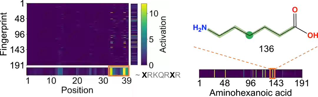 图 3.(左)正梯度活化热图,(右)用于功能肽序列的活化后化合物亚结构