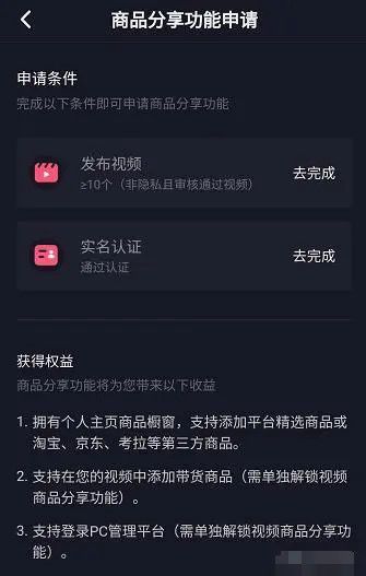 养号之后就可以开始发布原创视频,然后将你的粉丝数做到1000,就可以申请商品分享功能。