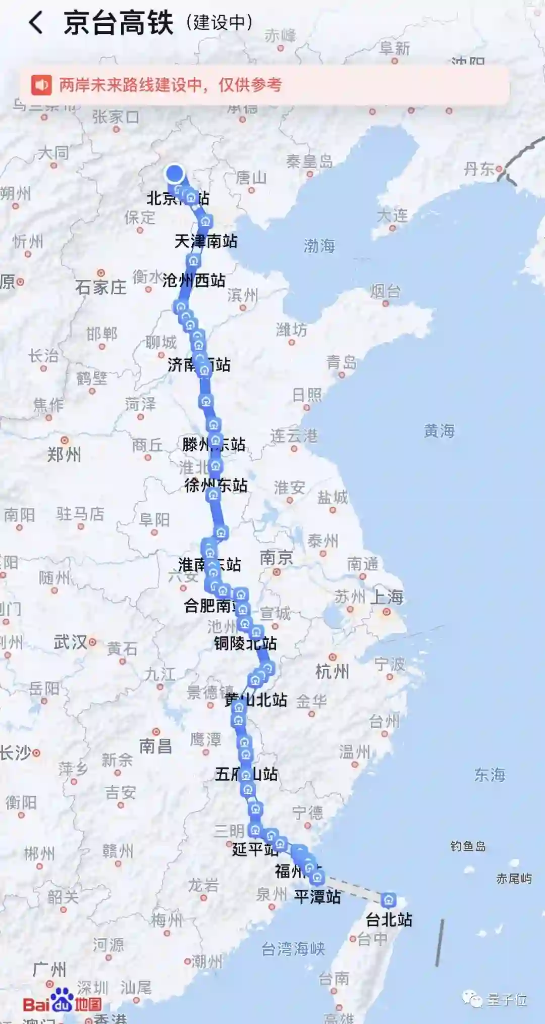 虽然京台高铁的具体跨海方式目前尚未公布,但其亮相手机地图一事,让去年被大伙儿传唱的《2035去台湾》再度翻红。