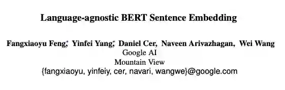 这一论文题目为「Language-agnostic BERT Sentence Embedding」,目前已在arxiv上发表。