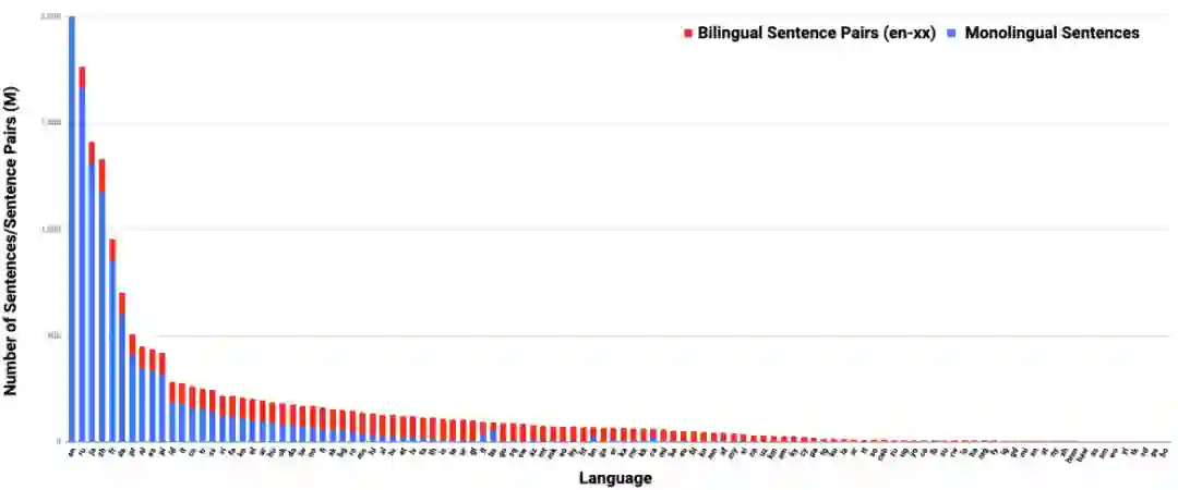 该模型使用MLM和TLM预训练在170亿个单语句子和60亿个双语句子对上进行了训练,即使在训练期间没有可用数据的低资源语言上也有效。
