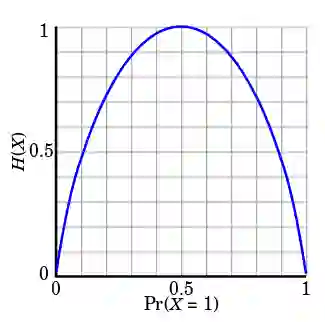 下面是对于伯努利试验中熵的图像。(伯努利试验有两种可能的结果:p和1-p):