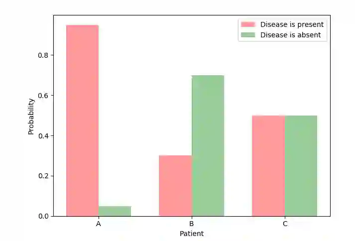 病人 A 知道他自己有 95% 的可能会患病。对于病人 B,患病概率为 30%,病人 C 的患病未患病的概率都为 50%。