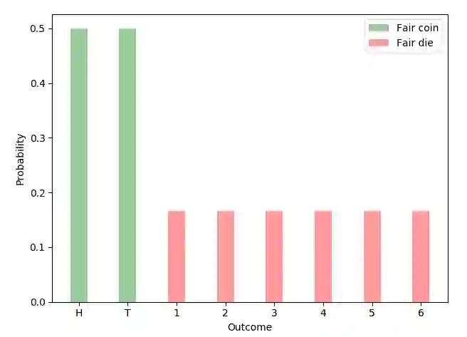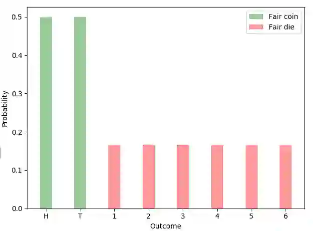 简单回顾一下概率分布:概率分布是一个函数,对于每个可能的结果都有一个概率,且所有的概率相加等于 1。当所有可能的结果具有相同的可能性时,该分布为均匀分布。例如:抛硬币实验(50% 和 50% 的概率), 均匀的骰子(每个面朝上的概率都为六分之一)。