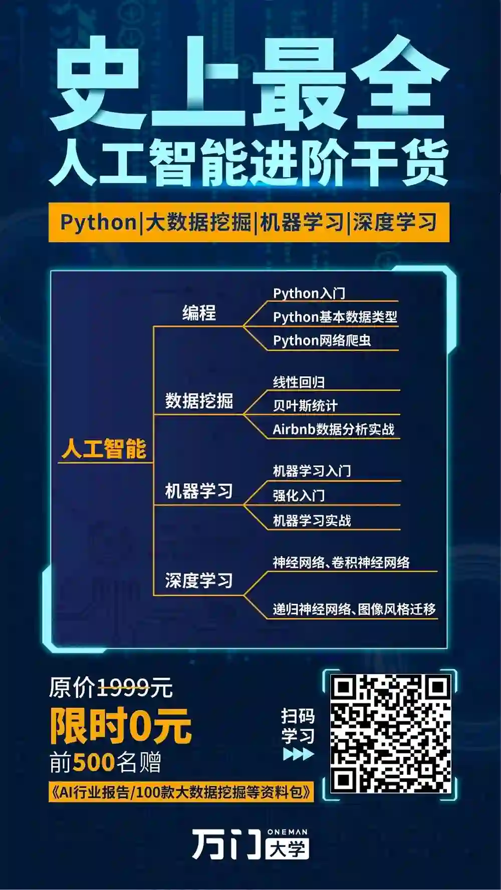 如果你想投入 AI 的怀抱,但却苦于不知如何下手。而当你准备自学机器学习和深度学习时,又被外面那些贵的要命的培训课程吓得不行时,你还可以选择成为本次万门大学人工智能专业的学员。