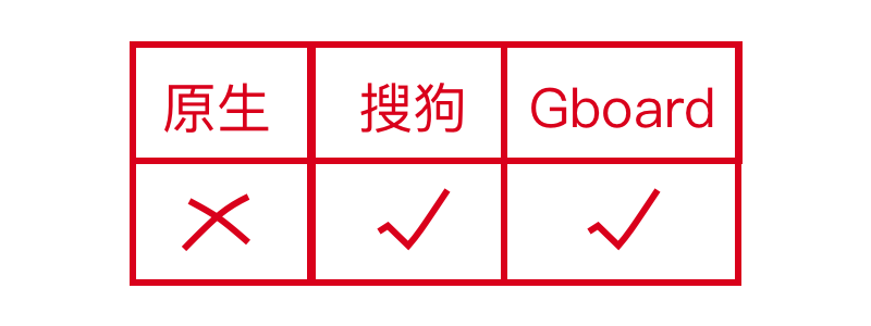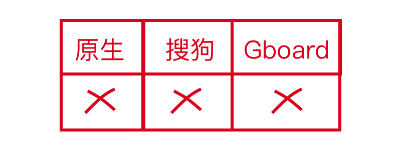 为了更加客观的对比,我将三个输入法都设置为全拼方案;输入的内容以汉字为主,兼有英文、数字和标点。每个小节前都有三个输入法的大致评价,这个只是相对的结论,比如三个全是❌并不代表它们全都很烂,可能只是另有应用做得更好,而我觉得它们也能做到。