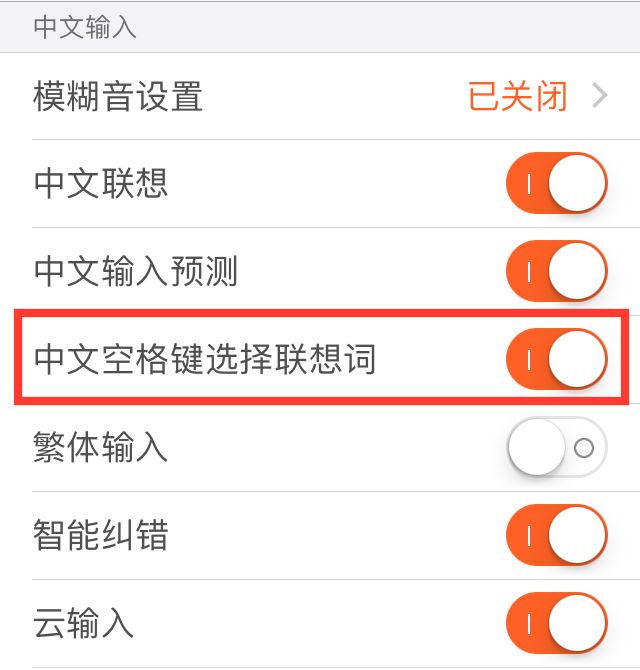 搜狗的支持空格上屏联想词,如果联想内容恰好是你想要的,直接再敲一次空格就打上去了。这歌功能值得你开启,搜狗联想很准,下载专门词库则效果更佳。但是不建议开启「云输入」,它会联想到乱七八糟的地方去。