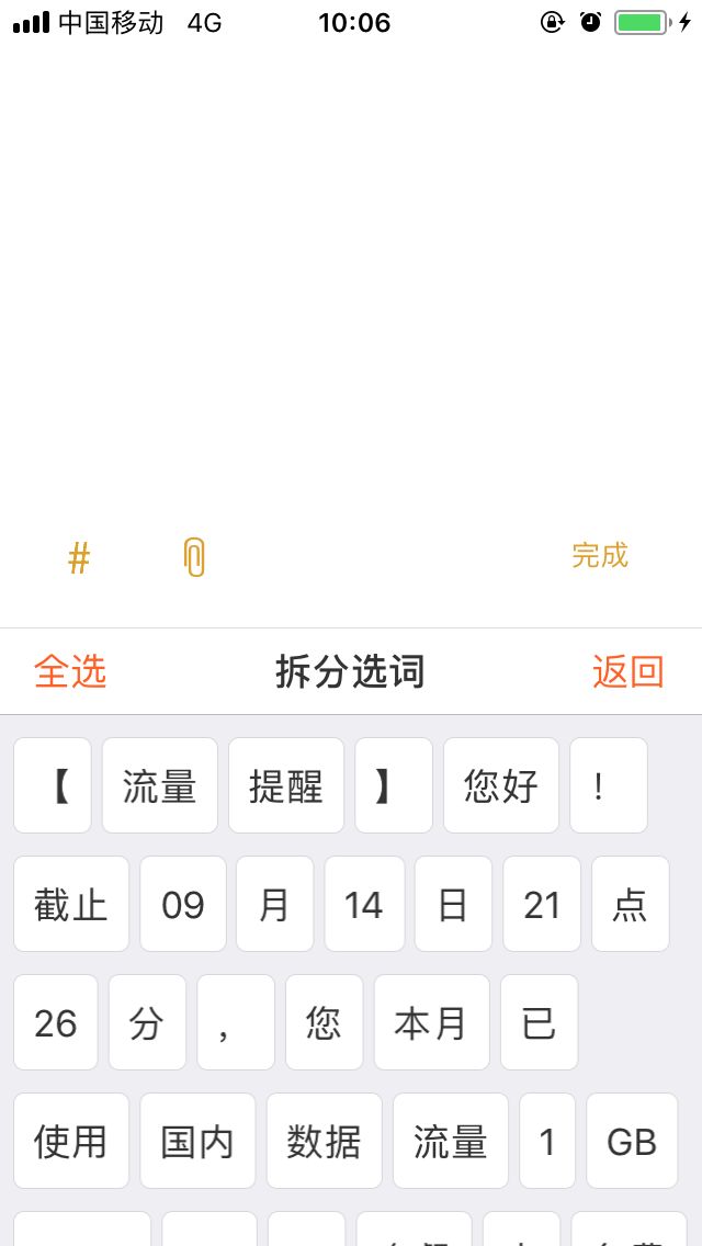 而搜狗输入法别有偏方,通过「Big Bang」拆分选词功能,将大段文字智能分段,以便快速点选。比起长按-划词,你只要粗略复制一段文字,从中精确挑选的任务输入法可以帮你完成。