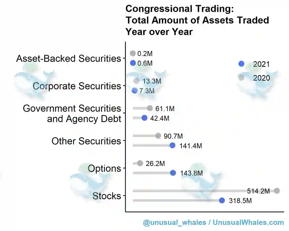 金融服务机构Unusual Whales的一项分析表明,国会议员去年的股票、期权、加密货币和其他资产交易额高达2.9亿美元,且表现优于市场同期水平。