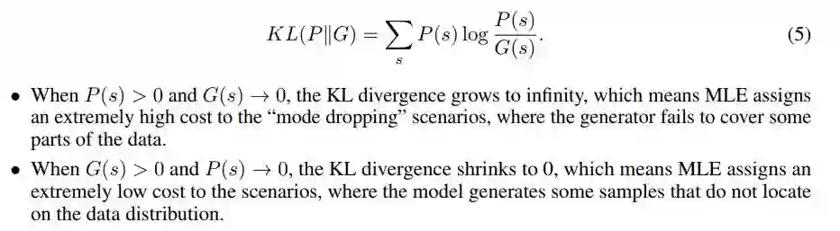由于KL散度不对称,对于预测中的失误,MLE这一目标函数能够给出比较好的惩罚进而给予纠正;但是对于潜在的生成失误,MLE并不能很好地起到作用。