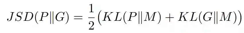 在图片生成等任务里,GAN之所以能奏效,是因为其本质上优化的是当前分布与目标分布的Jensen-Shannon散度(JSD),即: