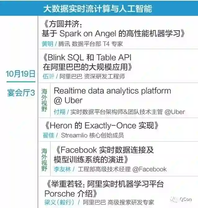 如果以上三天满满干货的日程都无法满足你的学习欲望,那10.15-16两天会前深度培训一定适合你,围绕大数据、机器学习、深度学习、TensorFlow等技术,展开从入门到实践的落地分享。Streamlio核心创始成员翟佳、PayPal大数据研发架构师张彭善已确认加盟。