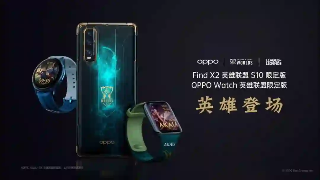 在发布会的尾声,OPPO 还带来了两款英雄联盟定制版的新品,分别是 OPPO Find X2 英雄联盟 S10 限定版手机,以 及OPPO Watch 的英雄联盟 S10 限定版。