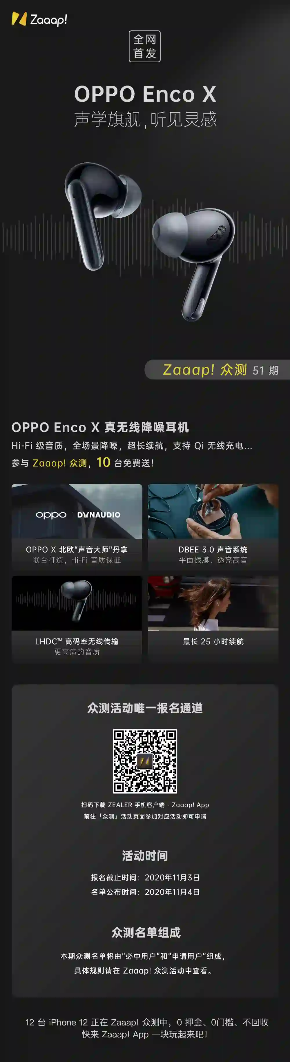 扫码上方图片二维码,下载zaaap!客户端赢取 10 个 OPPO 新品,价值 999 元,玩必中免费拿,0 押金无门槛。