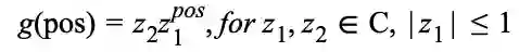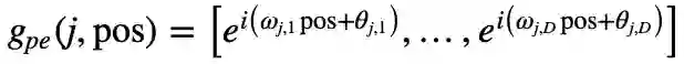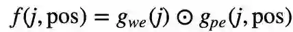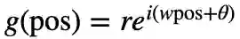 那么现在我们可以定义复数域词嵌入 g 是从词索引 j 和词位置索引 pos 到的映射。对于在位置 pos 的单词