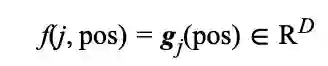 是从单词索引到 D 个函数的映射。那么 pos 位置的单词