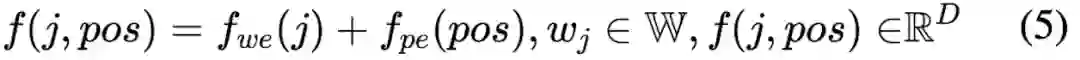 中的第 j 个词)在一个句子的 pos-th 位置时的最终嵌入通常通过求和来构建: