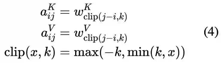 另外,作者认为精确的相对位置信息在超出了一定距离之后是没有必要的,并且截断后会使得模型的泛化效果好,即可以更好的泛化到没有在训练阶段出现过的序列长度上。