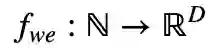 首先,词嵌入 WE 通常定义为一个将离散的词索引映射到一个 D 维实值向量的映射函数。