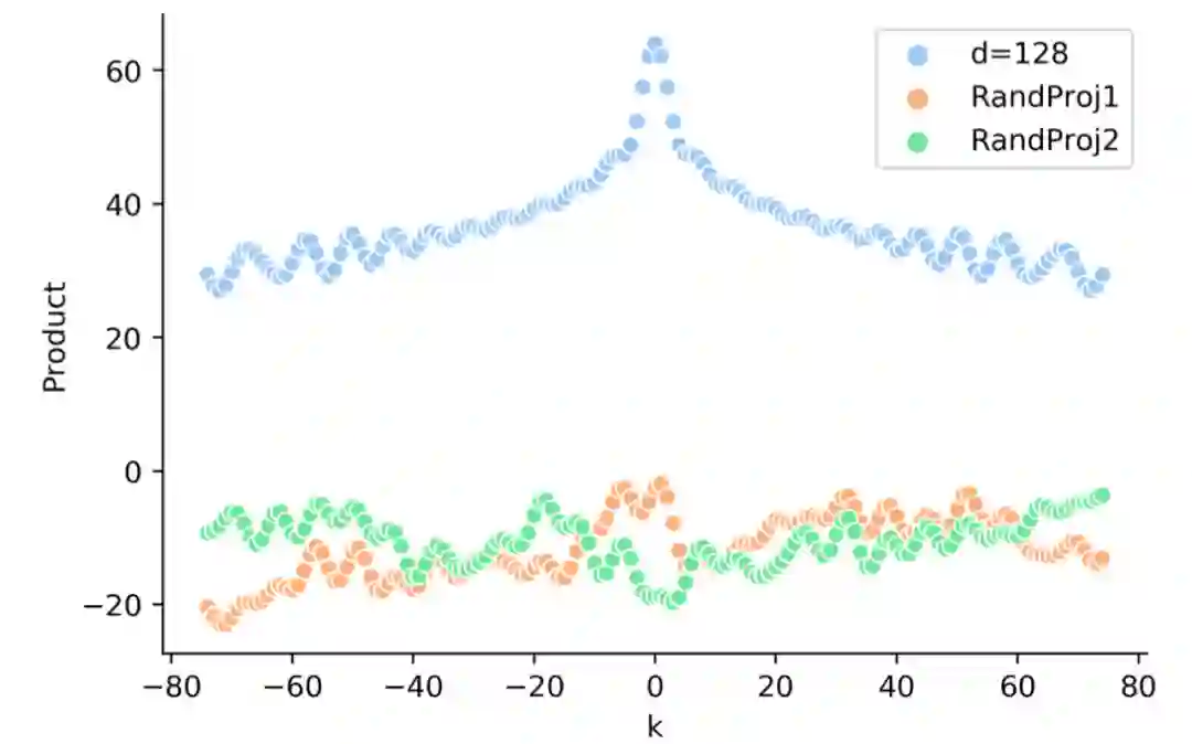 此外,由于点积结果只依赖于 k,那么令,可以由公式 (3) 可得: