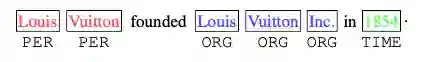 一般而言,在 Inc. 之前的单词为ORG ,而在 in 之后为 TIME 或 LOC 。但是同为 Louis Vuitton ,与 Inc. 相距较远的为PER,指的是创立者这一实体,而相距较近的为ORG,指的是组织(公司)这一实体。可见,单词之间的相对位置在 NER 任务中是十分重要(敏感)的。