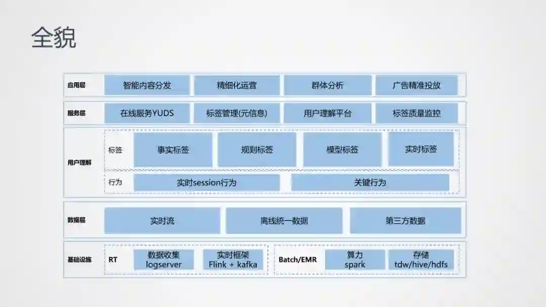 这里不再细讲,在后面会展开一下。以上,就是我们用户画像系统的全貌,下面再详细为大家介绍下: