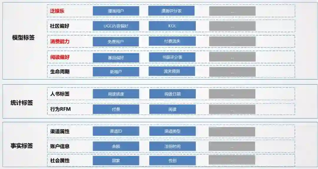 付费阅读偏好:是消费能力的一些积累。后面还有一些泛娱乐的标签,是因为我们的内容形态不仅有网文还有漫画等。