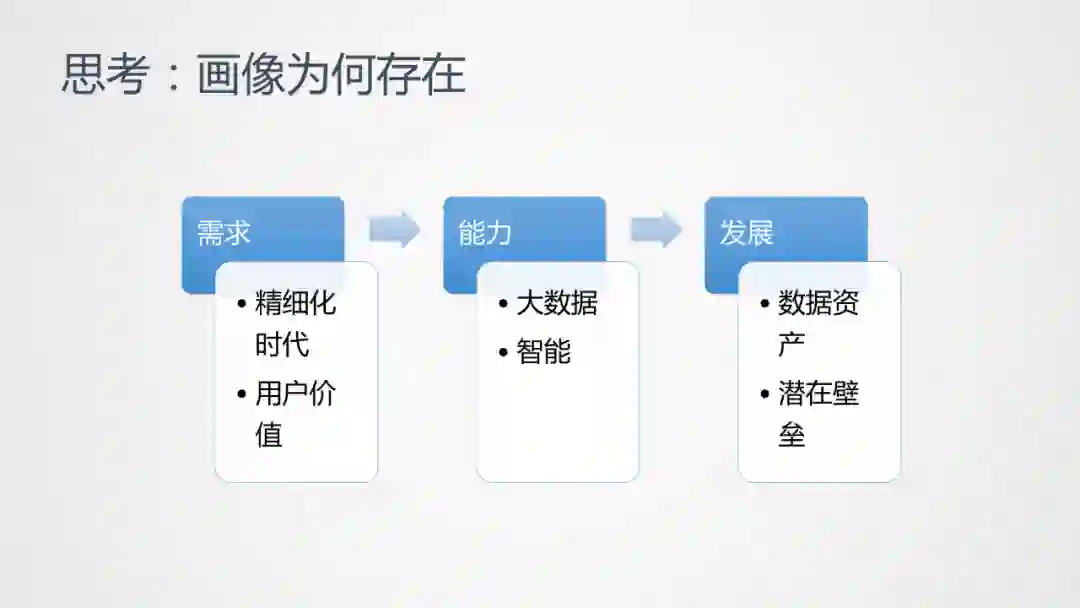 用户画像是公司对未来发展的重要基础。用户画像聚集了"上帝",因为我们做所有的APP都是为用户服务的,希望给用户提供更好的体验。这些"上帝"形成的画像,无形中成为了公司的资产,这在每个公司都是适用的。