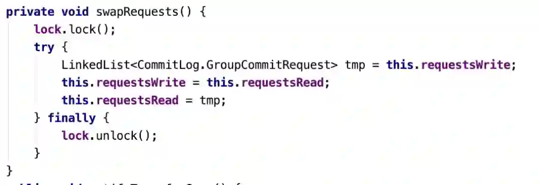 doWaitTransfer方法操作的主要对象是requestRead链表,而且该方法只会被GroupTransferService线程调用,并且requestRead中方法会在swapRequest中被修改,但这两个方法是串行执行,而且在同一个线程中,故无需引入锁,该锁可以移除。