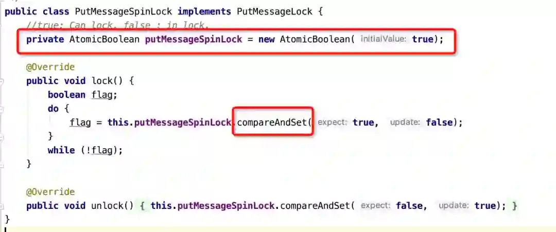 故这里没必要采取synchronized这种synchronized,而是可以自旋锁,自旋锁的实现非常轻量级,其实现如下图所示: