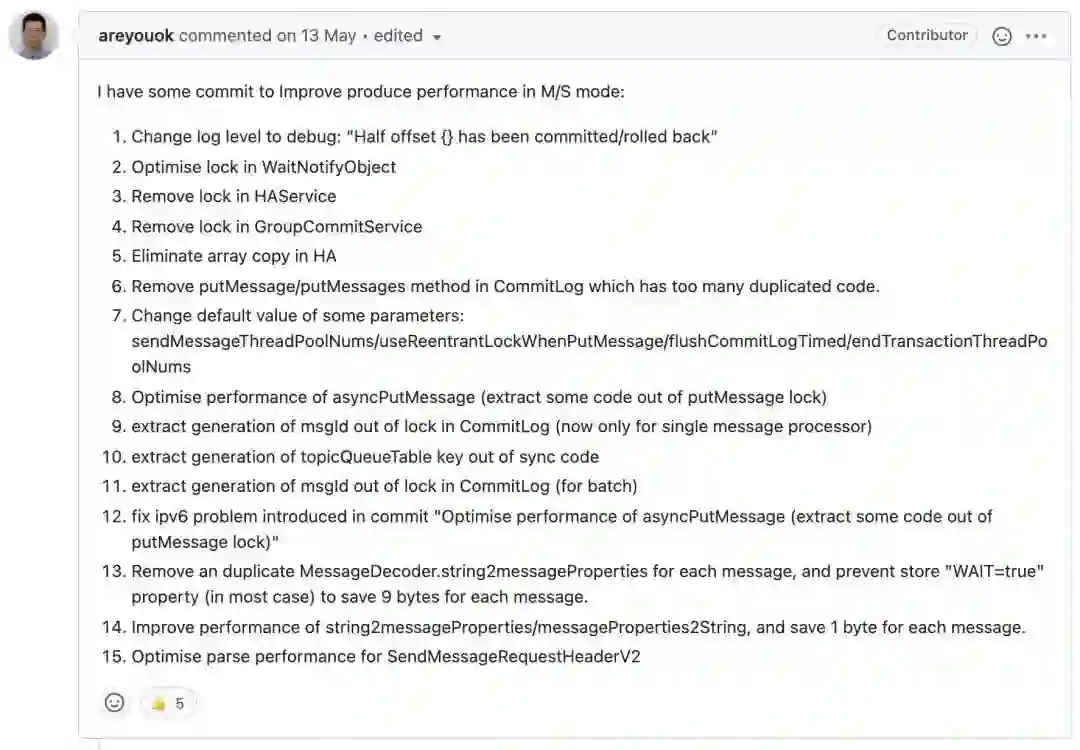 根据RocketMQ4.9.1的更新日志,我们从中提取到关于消息发送性能优化的【Issues:2883】,详细链接如下:具体优化点如截图所示: