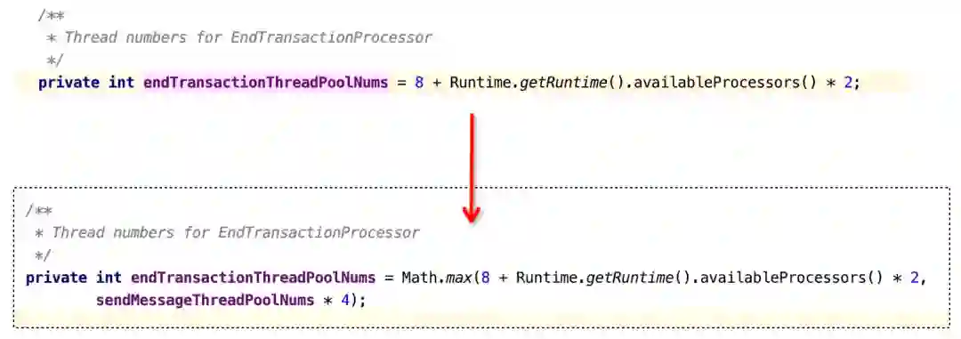 新版本主要是可通过调整发送线程池来动态调节事务消息的值,这个大家可以根据压测结果动态调整。